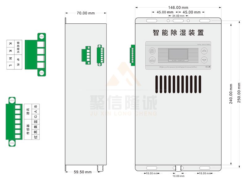 智能型除濕裝置是采用半導體制冷除濕方式,主動將密閉空間的潮濕空氣在風扇的作用下吸入除濕風道,空氣中的水汽經過半導體制冷機構后冷凝成水,再通過導水管排出柜體,可以達到很好的除濕效果。通過減低空氣中含水量,使相對濕度和絕對濕度同時下降,幾乎不提高溫度,不產生溫差帶來的負面影響,從根本上杜絕或減少了事故的發生,也不會因高溫而加速柜內器件及柜體的老化。智能型除濕裝置把被動防止凝露方式,改為主動引導凝露,有效的防止柜內設備老化、絕緣強度降低、二次端子擊穿、材料霉變及鋼結構件銹蝕等安全隱患,保證電網安全運行。